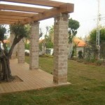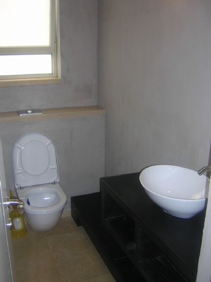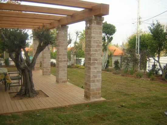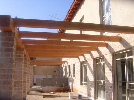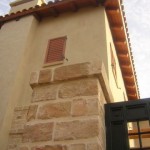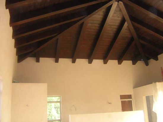 חומרי הגמר הם שילוב של עץ גושני (הגג), חיפוי הקירות החיצוניים באבן טבעית וטיח צבעוני בגוון אדמה
